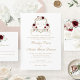 Invitation Floral Blush Bourgogne Monogram Crest Mariage