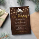 rustique simple et élégante ferme d'hiver mariage élégante invitation modèle sur marron brun grange bois avec un petit bouquet de fleurs blanches et cordes lumières scintillantes. ++++++++++ Personnalisez avec vos détails ! Vous pouvez choisir de le customiser en changeant davantage les polices et les couleurs de l'écriture. — L'invitation est appropriée pour l'élégant hiver rustique pays / montagnes mariages de station.