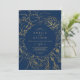 Invitation Floral doré | Mariage Décontracté bleu et or marin