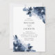 Élégantes invitations à des mariages fleuris avec des détails mariages avec des bouquets de fleurs abstraites d'aquarelle et des feuilles dans les tons bleu indigo vibrant. Conçu pour coordonner avec notre collection Abstraite de mariages floraux Indigo.