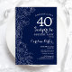 Floral marine bleu et blanc surprise 40e anniversaire invitation fête. Design moderne minimaliste avec accents botaniques et police de script de typographie. Carte invitation florale simple parfaite pour une célébration anniversaire surprise femme élégante. Peut être customisé à n'importe quel âge. Invitations Zazzle imprimées ou téléchargement instantané modèle imprimable numérique.