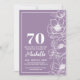 Voici une invitation chic et élégante à la fête du 70e anniversaire, parfaite pour célébrer avec style soixante-dix ans. Le design est composé d'un bel arrière - plan lilas ou lavande violet de part et d'autre, avec une fine ligne de fleur d'anémone descendant sur le côté droit. Bien qu'il s'agisse de fleurs anémones, elles peuvent donner un aspect floral assez générique. Un cadre simple autour du bord ajoute un détail supplémentaire au design général. Les polices sont un mélange d'élégante typographie de script, de style serif audacieux et de styles modernes simples, avec un grand "70" affiché en haut, suivi des détails de la fête ci-dessous. Sur le dos, le design se poursuit avec le même arrière - plan lilas ou lavande et un seul contour de fleurs blanches, ajoutant une touche subtile et sophistiquée. Cette invitation est parfaite pour une célébration de soixante-dixième anniversaire. La couleur arrière - plan, les polices et même les fleurs peuvent toutes être customisées selon votre style. Floral Purple 70e Anniversaire Invitation Fleurs Élégantes Lilac Lavender Et White Seventieth Party. Disponible sous forme d'invitation imprimée ou d'invitation numérique téléchargeable que vous pouvez envoyer par e-mail ou avoir imprimé localement !