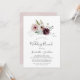Cette invitation à brunch mariage à la romance florale est parfaite pour un événement de mariage élégant. Le design boho rustique moderne présente des fleurs d'aquarelle romantiques dans des tons doux de bordeaux, mauve, rose rousse et blanc crème avec des feuilles verts.