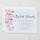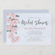 Ce design comprend une fleur rose botanique florale élégante, une douche nuptiale aux jolies fleurs de cerisiers, un URL en ligne du site de code QR, une page Facebook d'événements de médias sociaux, un script de calligraphie tendance, un jardin rose d'été fleuri, un feuillage bleu-vert clair, un style moderne et élégant typographie, une aquarelle illustrations dessinées à la main, un joli jardin rose fleurs rose rose