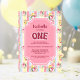 Invitation Floral rose rayé 1er anniversaire fête