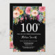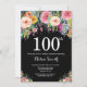 Floral 100th Birthday Invitation for Women. Fleur florale aquarelle. Arrière - plan de tableau noir. Rose, Jaune, Orange, Fleur Violette. Anniversaire adulte. Pour plus de personnalisation, cliquez sur le bouton "Customiser" et utilisez notre outil de conception pour modifier ce modèle.