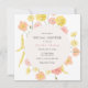 Une charmante invitation wedding shower avec des fleurs d'aquarelle douce dans la pêche et le jaune entourant une élégante disposition circulaire de texte. Parfait pour célébrer un mariage à venir avec une touche délicate et botanique.