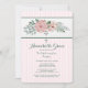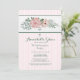 Une belle invitation rayée rose et blanc avec un croissant de roses et gris, des fleurs aquarelles et du feuillage. Parfait pour tout sacrement religieux. La croix en vedette peut être enlevée, ce qui en fait une invitation polyvalente.