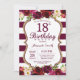 Invitation florale de fête d'anniversaire de Bourgogne 18ème pour des femmes. Rouge de Bourgogne et invitation de fête d'anniversaire d'or. Parties scintillantes d'or. Fleur florale d'aquarelle de Bourgogne. Bourgogne et rayures blanches. 13ème 15ème 16ème 18ème 20ème 21ème 30ème quarantième cinquantième soixantième soixante-dixième quatre-vingtième quatre-vingt-dixième 100th, tous âges. Digitals imprimables. Pour davantage de personnalisation, cliquez sur svp la "personnaliser il" bouton et utilisez notre outil de conception pour modifier ce modèle.