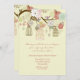 Une invitation délicieuse comportant les branches d'arbre de floraison avec des cages à oiseaux accrochantes et un couple doux d'oiseau. Parmi les fleurs là balancent également des coeurs. Approprié au bébé ou aux multiples de genre. Il est facile customiser la carte avec vos mots, police, couleur de police et choix de six types de papier.