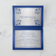 Cette invitation florale d'anniversaire de mariage de bleu royal élégant et de gris argenté quarantième a IMPRIMÉE SUR le ruban bleu et une paire de bijoux IMPRIMÉS de diamant et les coeurs jointifs par parties scintillantes de FAUX là-dessus, avec une frontière de motif de damassé de relief par FAUX. Le **** NOTENT SVP que c'est une carte imprimée d'appartement. Il n'y a aucune texture, taillant, ou gravant en refief sur n'importe quelle partie de la carte. Il est entièrement personnalisable. Si vous avez besoin de n'importe quels articles assortis, ou si vous voulez un changement de couleur, envoyez svp votre demande à niteowlstudio@gmail.com.