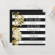 Invitation florale noir et blanc rayé avec finition dorée. Personnalisez pour n'importe quel événement.