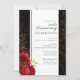 Invitations pour le 25e anniversaire de mariage avec fleurs gothiques rouges, éclaboussures rouges et noires, fleurs dorées. Feuilles florales en faux or. Police de caractères script avec nom en police sérif facile à lire. Facile à ajuster pour vos propres besoins de mariage.