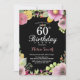 Floral 60e anniversaire Invitation pour les femmes. Aquarelle florale, rose, noir arrière - plan en damier. 13e 16e 18e 21e 30e 40e 50e 60e 70e 80e 90e 100e. N'Importe Quel Âge.