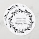 Invitations rondes élégantes de renouvellement de voeu de mariage dedans avec le motif floral vintage d'illustration de guirlande en noir et blanc rustique. Texte entièrement personnalisable pour inclure vos détails de cérémonie de renouvellement de voeu.