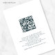Florales bleues modernes QR Code Mariage. De belles fleurs bleues et blanches ornent le bord supérieur. Ajoutez votre code QR à votre site Web mariage au verso afin que vos invités puissent RSVP et voir tous les détails en ligne sans avoir besoin de pièces jointes séparées. Une typographie informelle en noir pour l'en-tête principal du Mariage De compléter le reste du texte que vous pouvez facilement personnaliser.