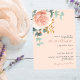 Un arrière - plan de couleur pêche. Décoré d'un rose doré floral, de feuilles d'eucalyptus vert aquarellés, de sprigs, de verdure et d'un faux doré. Personnalisez et ajoutez vos noms et les détails du mariage.