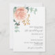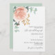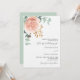 Un arrière - plan blanc chic. Décoré d'un rose doré floral, de feuilles d'eucalyptus vert aquarellés, de sprigs, de verdure et d'un faux doré. Personnalisez et ajoutez vos noms et les détails du mariage. Lettres noires. Dos : vert sauge couleur arrière - plan.