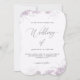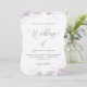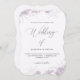 Calligraphie élégante avec des fleurs délicates de couleur pourpre et de feuillage sur à peine là faire-part de mariage arrière - plan violet.
