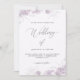 Calligraphie élégante à l'aquarelle violette délicate floraison et feuillage sur faire-part de mariage mauve douce.
