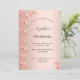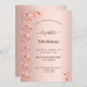 Une invitation moderne et élégante pour une fête d'anniversaire de 70e anniversaire. Un rose chic faux métallique, à l'aspect feuillu arrière - plan décoré de sprigs botaniques, floraux et feuillage de couleur rose et rose or. Le nom est écrit avec un script de style manuscrit tendance avec des swashes. Texte noir. Pour que les swashes ne suppriment que le nom de l'échantillon, laissez les espaces ou émoticônes devant et après le nom. Dos : rose or faux arrière - plan métallique.