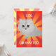 Un adorable chaton blanc moelleux sur un arrière - plan rouge vif. Cette mignonne invitation est parfaite pour toute occasion ! Art original © Lydia "PrairieGhost" Jacobs 2010