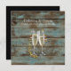 Invitation flûtes de champagne grange bleu rustique mariage