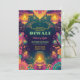 L'avant de l'invitation est orné d'un riche arrière - plan sombre qui découvre trois lampes Diya de style hindou, brillantes doucement. Une bordure somptueuse aux couleurs vives entoure les lampes, ajoutant une touche d'élégance traditionnelle. Une brume verte subtile améliore la profondeur et l'allure du design, créant une atmosphère mystique et accueillante. Les détails de l'événement sont présentés dans un script élégant qui complète la bordure opulente. Le dos de la carte continue le thème sombre, avec l'espace pour le texte personnalisable et les souhaits de Diwali, encadré par la même frontière exquise et la brume verte. Ce design allie charme classique et contemporain, parfait pour célébrer le Festival des Lumières.