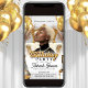 Cette invitation a une ambiance classe avec des détails festifs blancs et or, des ballons dorés et un trône élégant en arrière-plan. La mise en page comprend un espace dédié pour télécharger votre propre photo et modifier les détails de votre événement. C'est un choix parfait pour les grandes célébrations ou les fêtes sur le thème royal. Disponible en téléchargement numérique ou en impression directe via Zazzle, il offre à la fois style et commodité.