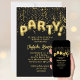 Préparez-vous à faire la fête ! Notre chic invitation à l'anniversaire comprend ‘PARTY!’ en texte de ballon en feuille d'or frais, entouré de confettis dorés. Les détails de votre soirée sont élégamment scénarisés en or sur un fond noir sophistiqué. Le dos de l'invitation est noir et contient des confettis supplémentaires. Rejoignez la fête !