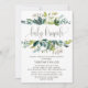 Cette carte d'invitation au brunch pour bébés feuillage est parfaite pour un baby shower de brunch rustique. L'aménagement comprend un cadre boho composé de feuilles verts et de plantes botaniques verdoyantes. L'appui est assorti d'une couronne de pays qui peut être personnalisée avec le nom de la future mère.