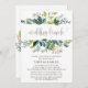 Cette carte d'invitation au brunch mariage feuillu est parfaite pour un événement rustique. L'aménagement comprend un cadre boho composé de feuilles verts et de plantes botaniques verdoyantes. L'appui est assorti d'une couronne de pays qui peut être personnalisée avec le monogramme du couple.