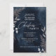 Cette invitation à la fête de Noël d'entreprise présente un arrière - plan bleu foncé agrémenté d'un feuillage d'hiver teinté d'aquarelle et gris. Le design est parfait pour toute fête de Noël d'affaires.