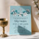 Baptême folksy bleu pâle et blanc floral invitation avec des polices de charme contre un arrière - plan bleu pâle. Invitation au baptême floral avec de jolies fleurs bleues et blanches dans un style folk dessiné à la main et une croix blanche. Bleu et blanc invitation au baptême avec de simples illustrations florales en bleu et blanc et turquoise foncé pour le baptême de votre fils.