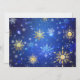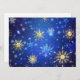 Fond bleu de Noël avec flocons de neige en or et bijoux blancs. Flocons de neige dorés. Noël.