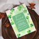 Capturez l'essence de la Saint-Patrick avec notre invitation d'inspiration vintage mettant en vedette une bordure charmante de feuilles de trèfle vertes luxuriantes. Ce design classique, orné d'une typographie intemporelle, donne le ton parfait pour votre célébration sur le thème irlandais. Que ce soit une fête de la Saint-Patrick, un mariage irlandais ou toute autre occasion festive, invitez vos invités avec style grâce à cette invitation élégante et intemporelle. Personnalisez-la avec les détails de votre événement et partagez la chance des Irlandais !