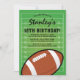 Score un toucher avec votre planification de fête! Nos invitations à des soirées de football américain comprennent un arrière - plan vert vif dégradé, un terrain de football détaillé et un football réaliste, ainsi qu'un maillot américain bleu qui peut être personnalisé avec votre nom et votre âge. Si l'on passe le jeu au niveau supérieur, ces invitations se vantent aussi d'un modèle de célébration d'anniversaire moderne qui est une cinque à personnaliser. Faites de votre prochaine fête d'anniversaire l'événement sportif de la saison avec ces invitations uniques et faciles à customiser.