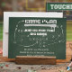 Get your squad ready for the main event with this "Game Plan" football party invitation! The design features a realistic green chalkboard texture background covered in classic white chalk football plays, Xs, and Os. The header reads "GAME PLAN" in a stencil font with a spray-paint style underline, followed by "JOIN US FOR THE BIG GAME."