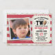 Invitation vos invités en style avec ce super mignon billet de football sport 2e anniversaire invitation photo fête. Ce design présente un arrière - plan rustique de bois patiné rouge et blanc, Sur la gauche est la photo de votre enfant dans un cadre (le carré fonctionne le mieux) et sur la droite est un billet avec toutes vos informations personnelles. On peut y lire : "Notre Petit Quartier est en train de tourner deux ans (un football remplace la lettre "O"), S'il vous plaît, rejoignez-nous pour cet Événement Epic Anniversaire, en l'honneur de, (nom de votre enfant)", la date de la fête et l'adresse avec RSVP est ci-dessous. Le dos de la carte a des rayures rouges et blanches dans un bois patiné assorti. C'est une invitation personnalisée que votre famille et vos amis adoreront et garderont en souvenir. Conçu par l'artiste ©Susan Coffey et Tim Coffey. Photographie © Storytree Studios, Stanford, CA.
