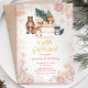 Invitation Forêt animale Pink Winter Onederland Anniversaire