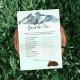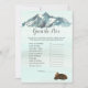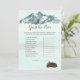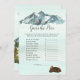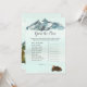Profitez de jouer à ce jeu Guess the Price baby shower. C'est un thème de début d'aventure, avec une maman et un bébé ours sur le dos. Ce design comprend une forêt rustique, des montagnes aquarelles avec un lac réfléchissant devant, et des pins autour du lac. Bébé ourlet sur le dos avec du gibier.
