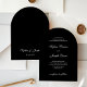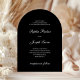 These sophisticated and modern black wedding invitations feature formal white script calligraphy and classic white text on a trendy arch shape. Your names and wedding date appear in calligraphy on the back as a decorative element. An updated contemporary spin on a traditional, elegant layout.