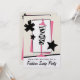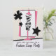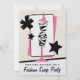 Un invitation de partie d'échange de vêtements de mode comportant une illustration d'une copie de zèbre et d'une forme rose de robe entourées par des étoiles décoratives de noir et un arrière - plan de rose, de noir, et blanc. Personnalisez le texte sur l'avant et le dos.