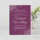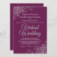 Ce n'est pas parce que vous avez été forcé de déplacer votre mariage vers une cérémonie virtuelle que vous ne pouvez pas envoyer de belles invitations. Cet élégant invitation présente des lettres grises fantaisie sur un arrière - plan de couleur prune magenta ou mauve de baies avec un faux fil argenté en dentelle ou des boucles et tourbillons dans les coins. Un moyen parfait d'invitation vos amis et votre famille pour partager votre journée spéciale, même s'ils ne peuvent pas être là en personne.