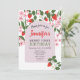 Mignonne, rose et rouge floral, été, fraise moderne 1er anniversaire invitation pour la fête de petite fille.