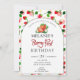 Fraise 1er anniversaire | Berry First Invitation Carte d'invitation pour la 1ère fête d'anniversaire de la fille mignonne avec une illustration aquarelle de fraises. Le texte dit "Rejoignez-nous pour célébrer le premier anniversaire de la baie de XX" Le côté arrière de la carte d'invitation est également décoré sur le thème de la fraise.