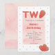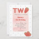 Invitation d'anniversaire sur le thème de la fraise. Lettres lumineuses avec des fraises. Détail de pois sucré au verso. Rouge et rose. Parfait pour le deuxième 2ème 2 anniversaire de bébé ou de toddler, Modifiez facilement le texte moderne et amusant. S'intègre dans le thème de la party tutti fruity / twotii fruity ou le thème berry sweet. Trouvez des accessoires assortis dans la boutique Gemma Harlow Creations ou transférez le design sur vos produits préférés.