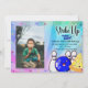"Faisons la fête", carte d'invitation de fête bleue avec espace pour ajouter la photo personnalisée de l'enfant. Cette invitation est sur un fond teinté à l'aspect saisissant (bleu), utilisant des couleurs vives et tendance. Personnages de dessin animé amusants !