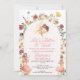 Arc Fleur sauvage moderne Feffervescence Anniversaire Invitation Sweet flutter et tournoyer avec l'invitation anniversaire de fée fille d'anniversaire avec beaucoup de fleurs sauvages, une arche et trois fées sucrées et tabourets.
