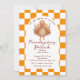 Réunissez vos amis les plus proches pour un festin avec cette invitation à la chance de Friendsgiving. Doté d'une dinde d'aquarelle joyeuse tenant une fourchette et un couteau, encadré par une bordure à damiers orange et blanc audacieuse, ce design est parfait pour célébrer la gratitude, la nourriture et l'amitié. Idéal pour un invitation de souper d'Amical, une soirée de potluck Thanksgiving ou un rassemblement d'automne décontracté, cette invitation est entièrement personnalisable afin que vous puissiez ajouter vos propres détails d'événement. Célébrez la saison des remerciements avec cette invitation à la chance Amical et festive que vos invités aimeront.
